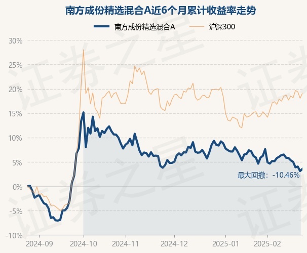 证券之星消息,2月26日,南方成份精选混合A最新单位净值为0.5726元,累计净值为1.9652元,较前一交易日上涨0.44%。历史数据显示该基金近1个月下跌2.52%,近3个月下跌0.71%,近6个月上涨3.56%,近1年上涨2.75%。该基金近6个月的累计收益率走势如下图: