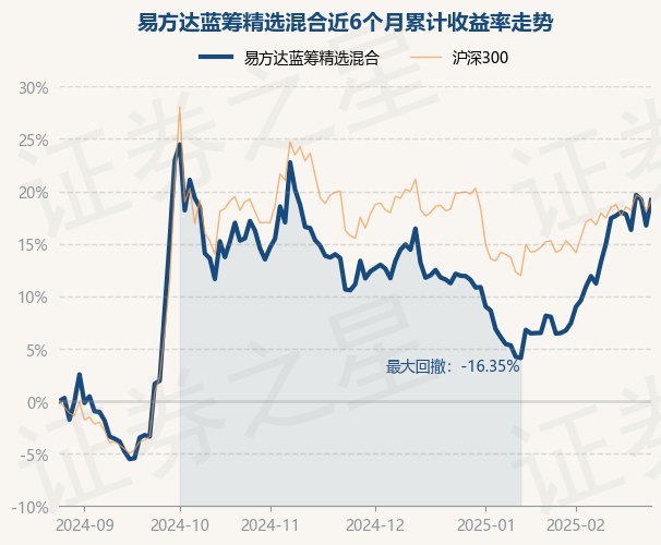 证券之星消息,2月26日,易方达蓝筹精选混合最新单位净值为1.873元,累计净值为1.873元,较前一交易日上涨2.06%。历史数据显示该基金近1个月上涨11.63%,近3个月上涨7.19%,近6个月上涨19.16%,近1年上涨11.71%。该基金近6个月的累计收益率走势如下图: