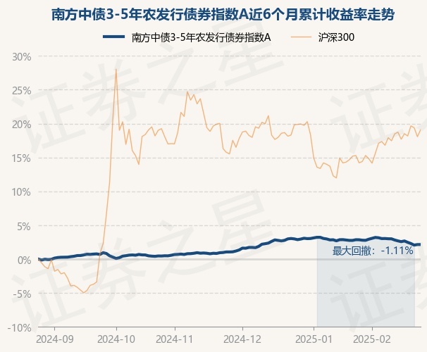 证券之星消息,2月26日,南方中债3-5年农发行债券指数A最新单位净值为1.1029元,累计净值为1.2559元,较前一交易日上涨0.0%。历史数据显示该基金近1个月下跌0.6%,近3个月上涨1.08%,近6个月上涨2.15%,近1年上涨4.84%。该基金近6个月的累计收益率走势如下图: