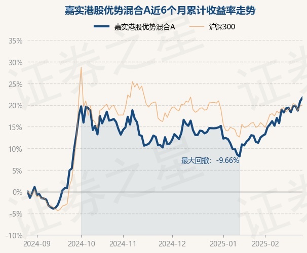 证券之星消息,2月27日,嘉实港股优势混合A最新单位净值为0.9455元,累计净值为0.9455元,较前一交易日上涨0.7%。历史数据显示该基金近1个月上涨7.76%,近3个月上涨8.12%,近6个月上涨21.72%,近1年上涨32.31%。该基金近6个月的累计收益率走势如下图: