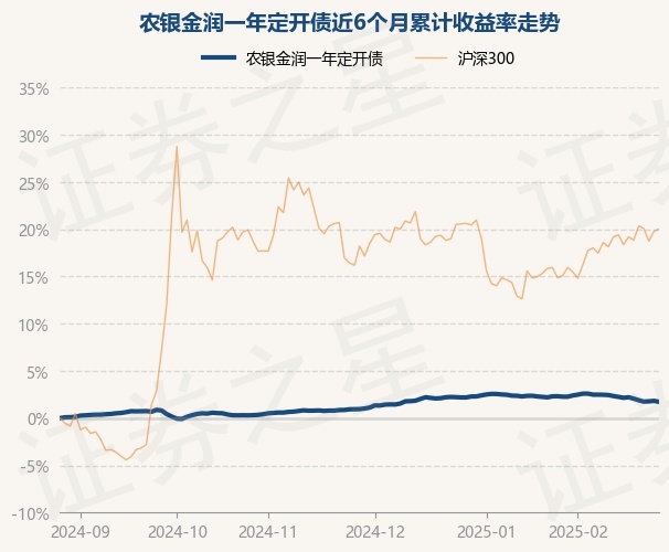 证券之星消息,2月27日,农银金润一年定开债最新单位净值为1.036元,累计净值为1.16元,较前一交易日下跌0.1%。历史数据显示该基金近1个月下跌0.65%,近3个月上涨0.77%,近6个月上涨1.73%,近1年上涨3.8%。该基金近6个月的累计收益率走势如下图: