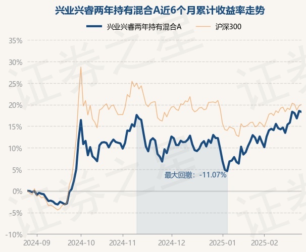证券之星消息,2月27日,兴业兴睿两年持有混合A最新单位净值为0.8509元,累计净值为0.8509元,较前一交易日下跌0.19%。历史数据显示该基金近1个月上涨6.31%,近3个月上涨7.9%,近6个月上涨18.31%,近1年上涨14.71%。该基金近6个月的累计收益率走势如下图: