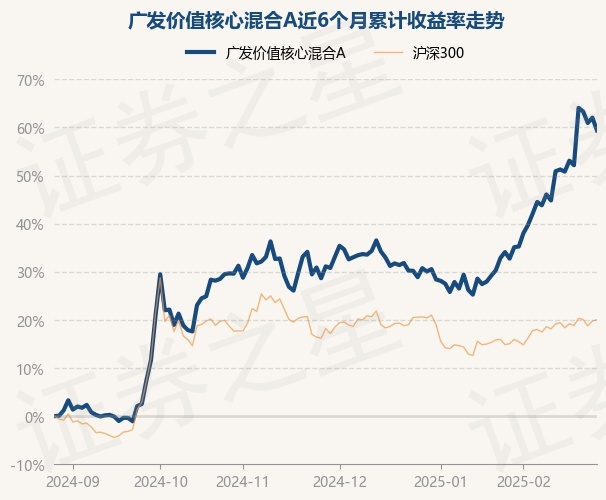 证券之星消息,2月27日,广发价值核心混合A最新单位净值为0.7308元,累计净值为0.7308元,较前一交易日下跌1.63%。历史数据显示该基金近1个月上涨17.85%,近3个月上涨21.56%,近6个月上涨59.39%,近1年上涨49.6%。该基金近6个月的累计收益率走势如下图: