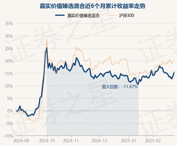 证券之星消息,2月27日,嘉实价值臻选混合最新单位净值为0.8392元,累计净值为0.8392元,较前一交易日上涨1.23%。历史数据显示该基金近1个月下跌0.63%,近3个月上涨1.0%,近6个月上涨15.35%,近1年上涨9.91%。该基金近6个月的累计收益率走势如下图: