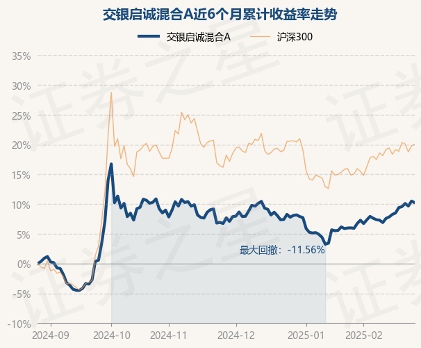 证券之星消息,2月27日,交银启诚混合A最新单位净值为1.1101元,累计净值为1.1101元,较前一交易日下跌0.24%。历史数据显示该基金近1个月上涨2.74%,近3个月上涨2.36%,近6个月上涨10.23%,近1年上涨7.93%。该基金近6个月的累计收益率走势如下图:
