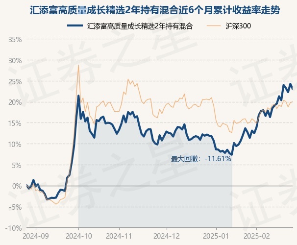 证券之星消息,2月27日,汇添富高质量成长精选2年持有混合最新单位净值为0.4987元,累计净值为0.4987元,较前一交易日下跌0.93%。历史数据显示该基金近1个月上涨9.44%,近3个月上涨9.92%,近6个月上涨23.11%,近1年上涨21.6%。该基金近6个月的累计收益率走势如下图: