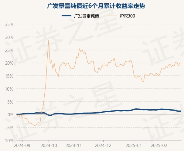 广发景富纯债为债券型-长债基金,根据最新一期基金季报显示,该基金资产配置:无股票类资产,债券占净值比125.25%,现金占净值比0.14%。