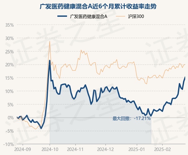 证券之星消息,2月27日,广发医药健康混合A最新单位净值为0.4758元,累计净值为0.4758元,较前一交易日上涨1.36%。历史数据显示该基金近1个月上涨12.06%,近3个月上涨3.66%,近6个月上涨15.12%,近1年上涨7.31%。该基金近6个月的累计收益率走势如下图: