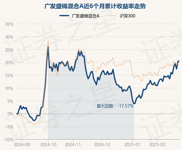 证券之星消息,2月27日,广发盛锦混合A最新单位净值为0.5788元,累计净值为0.5788元,较前一交易日上涨0.17%。历史数据显示该基金近1个月上涨8.61%,近3个月上涨5.54%,近6个月上涨20.53%,近1年上涨2.88%。该基金近6个月的累计收益率走势如下图:
