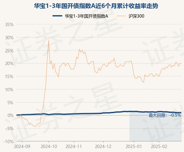 证券之星消息,2月27日,华宝1-3年国开债指数A最新单位净值为1.0533元,累计净值为1.1323元,较前一交易日下跌0.07%。历史数据显示该基金近1个月下跌0.37%,近3个月上涨0.29%,近6个月上涨0.93%,近1年上涨2.62%。该基金近6个月的累计收益率走势如下图: