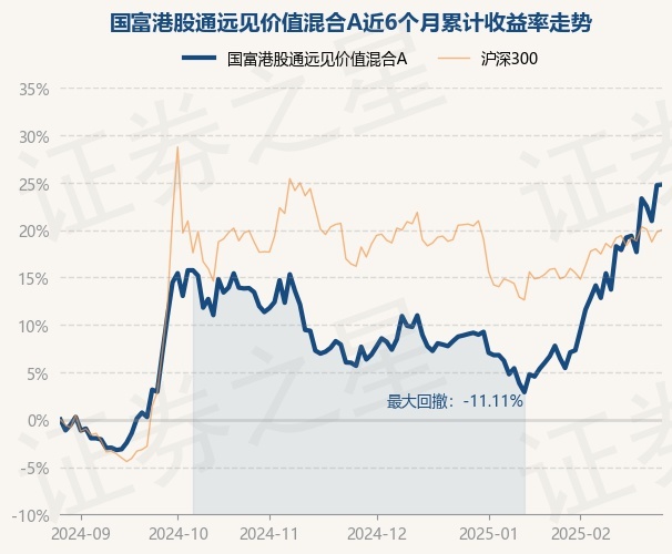 证券之星消息,2月27日,国富港股通远见价值混合A最新单位净值为0.7629元,累计净值为0.7629元,较前一交易日上涨0.05%。历史数据显示该基金近1个月上涨16.3%,近3个月上涨15.89%,近6个月上涨24.8%,近1年上涨27.36%。该基金近6个月的累计收益率走势如下图: