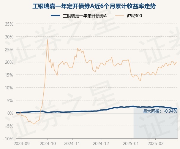 证券之星消息,2月27日,工银瑞嘉一年定开债券A最新单位净值为1.0559元,累计净值为1.0753元,较前一交易日下跌0.11%。历史数据显示该基金近1个月下跌0.76%,近3个月上涨0.89%,近6个月上涨1.61%,近1年上涨3.54%。该基金近6个月的累计收益率走势如下图: