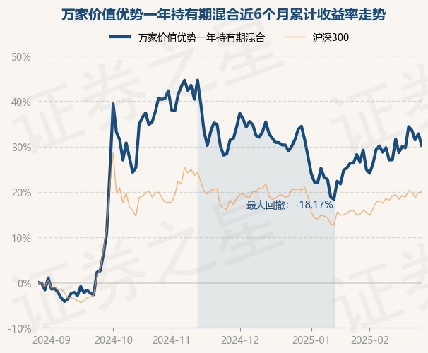 证券之星消息,2月27日,万家价值优势一年持有期混合最新单位净值为1.636元,累计净值为1.636元,较前一交易日下跌1.91%。历史数据显示该基金近1个月上涨4.3%,近3个月下跌0.9%,近6个月上涨30.29%,近1年上涨24.66%。该基金近6个月的累计收益率走势如下图: