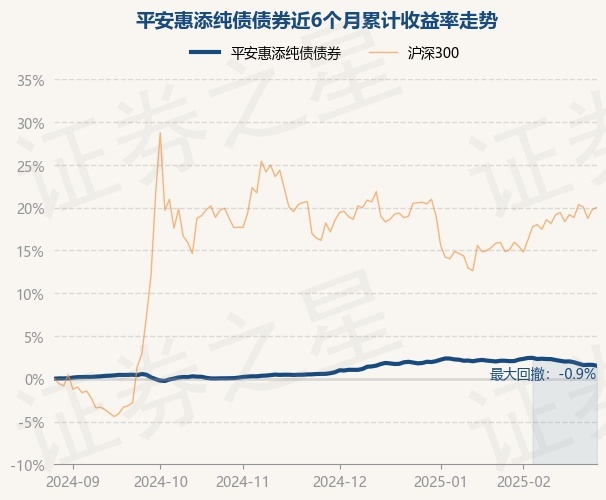 证券之星消息,2月27日,平安惠添纯债债券最新单位净值为1.0673元,累计净值为1.2085元,较前一交易日下跌0.11%。历史数据显示该基金近1个月下跌0.71%,近3个月上涨0.94%,近6个月上涨1.51%,近1年上涨3.34%。该基金近6个月的累计收益率走势如下图:
