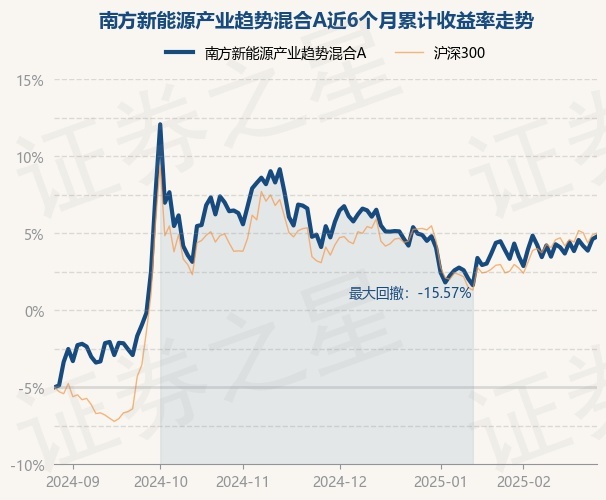 证券之星消息,2月27日,南方新能源产业趋势混合A最新单位净值为0.6401元,累计净值为0.6401元,较前一交易日上涨0.28%。历史数据显示该基金近1个月上涨2.2%,近3个月下跌1.11%,近6个月上涨19.58%,近1年上涨16.64%。该基金近6个月的累计收益率走势如下图: