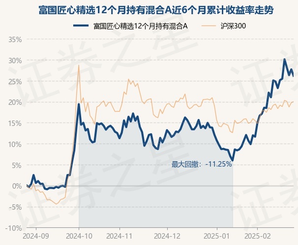证券之星消息,2月27日,富国匠心精选12个月持有混合A最新单位净值为0.7859元,累计净值为0.7859元,较前一交易日下跌1.21%。历史数据显示该基金近1个月上涨13.01%,近3个月上涨13.29%,近6个月上涨26.19%,近1年上涨26.43%。该基金近6个月的累计收益率走势如下图: