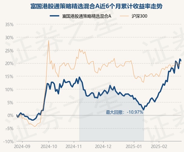 证券之星消息,2月27日,富国港股通策略精选混合A最新单位净值为0.828元,累计净值为0.828元,较前一交易日下跌0.55%。历史数据显示该基金近1个月上涨12.93%,近3个月上涨11.2%,近6个月上涨20.89%,近1年上涨29.21%。该基金近6个月的累计收益率走势如下图: