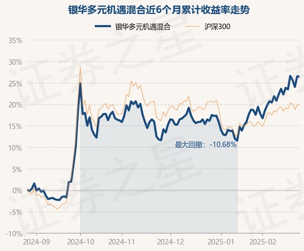 证券之星消息,2月27日,银华多元机遇混合最新单位净值为0.535元,累计净值为0.535元,较前一交易日下跌0.02%。历史数据显示该基金近1个月上涨7.37%,近3个月上涨10.77%,近6个月上涨26.45%,近1年上涨12.16%。该基金近6个月的累计收益率走势如下图: