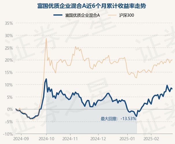 证券之星消息,2月27日,富国优质企业混合A最新单位净值为0.7909元,累计净值为0.7909元,较前一交易日下跌0.32%。历史数据显示该基金近1个月上涨5.21%,近3个月上涨5.44%,近6个月上涨8.19%,近1年上涨2.1%。该基金近6个月的累计收益率走势如下图:
