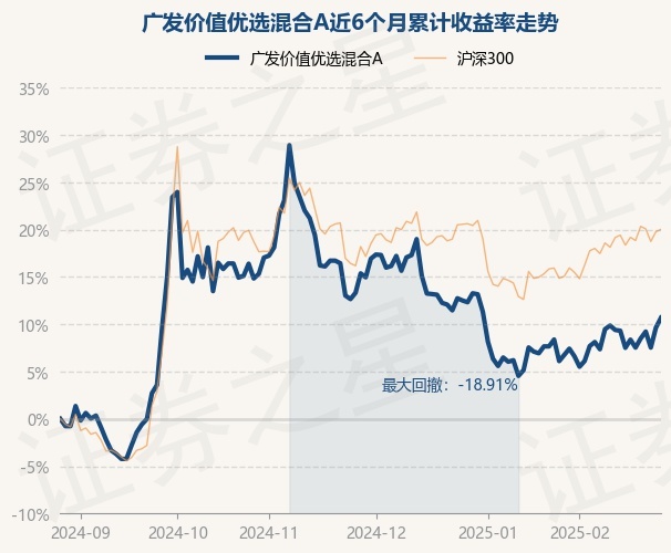 证券之星消息,2月27日,广发价值优选混合A最新单位净值为0.9625元,累计净值为0.9625元,较前一交易日上涨0.95%。历史数据显示该基金近1个月上涨3.82%,近3个月下跌4.07%,近6个月上涨10.68%,近1年上涨9.05%。该基金近6个月的累计收益率走势如下图: