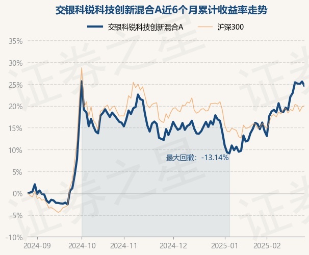 证券之星消息,2月27日,交银科锐科技创新混合A最新单位净值为1.2406元,累计净值为1.2406元,较前一交易日下跌0.81%。历史数据显示该基金近1个月上涨9.03%,近3个月上涨8.62%,近6个月上涨24.57%,近1年上涨15.64%。该基金近6个月的累计收益率走势如下图: