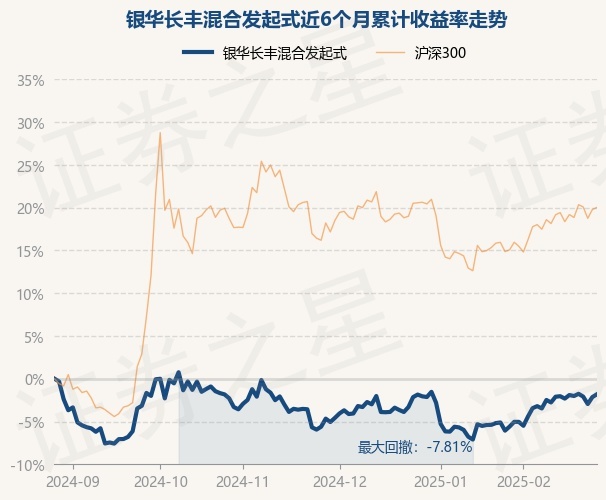 证券之星消息,2月27日,银华长丰混合发起式最新单位净值为1.4419元,累计净值为1.4419元,较前一交易日上涨0.34%。历史数据显示该基金近1个月上涨3.41%,近3个月上涨2.99%,近6个月下跌1.81%,近1年上涨10.95%。该基金近6个月的累计收益率走势如下图: