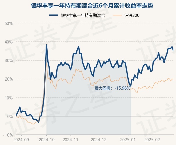 证券之星消息,2月27日,银华丰享一年持有期混合最新单位净值为0.8147元,累计净值为0.8147元,较前一交易日下跌1.45%。历史数据显示该基金近1个月上涨8.98%,近3个月上涨7.21%,近6个月上涨35.22%,近1年上涨17.16%。该基金近6个月的累计收益率走势如下图: