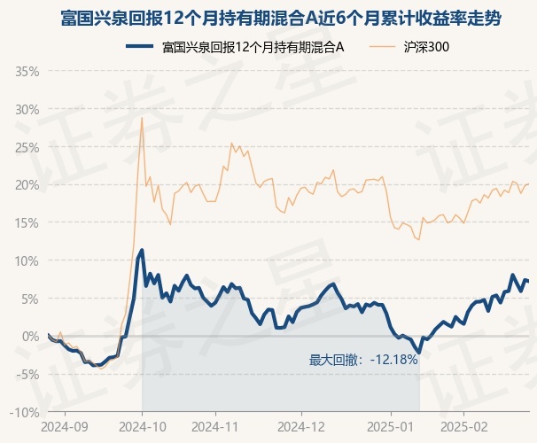 证券之星消息,2月27日,富国兴泉回报12个月持有期混合A最新单位净值为0.8169元,累计净值为0.8169元,较前一交易日下跌0.16%。历史数据显示该基金近1个月上涨5.19%,近3个月上涨4.52%,近6个月上涨7.16%,近1年上涨2.96%。该基金近6个月的累计收益率走势如下图: