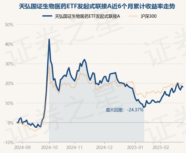 证券之星消息,2月27日,天弘国证生物医药ETF发起式联接A最新单位净值为0.4078元,累计净值为0.4078元,较前一交易日下跌0.34%。历史数据显示该基金近1个月上涨7.06%,近3个月下跌2.65%,近6个月上涨18.07%,近1年下跌8.59%。该基金近6个月的累计收益率走势如下图: