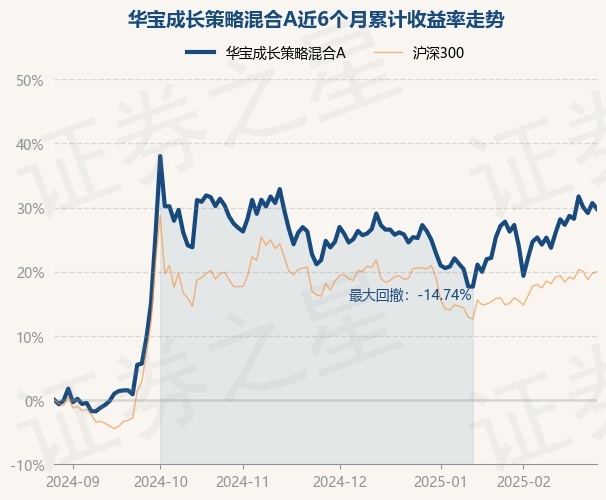证券之星消息,2月27日,华宝成长策略混合A最新单位净值为1.5535元,累计净值为1.5535元,较前一交易日下跌0.7%。历史数据显示该基金近1个月上涨4.67%,近3个月上涨3.98%,近6个月上涨29.78%,近1年上涨21.58%。该基金近6个月的累计收益率走势如下图: