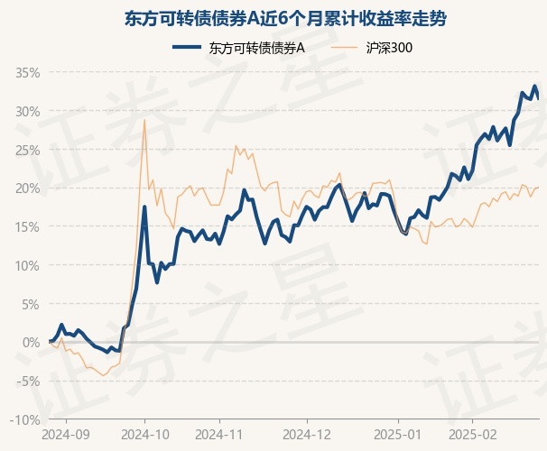 证券之星消息,2月27日,东方可转债债券A最新单位净值为1.0654元,累计净值为1.1104元,较前一交易日下跌1.17%。历史数据显示该基金近1个月上涨8.68%,近3个月上涨14.33%,近6个月上涨31.56%,近1年上涨16.46%。该基金近6个月的累计收益率走势如下图: