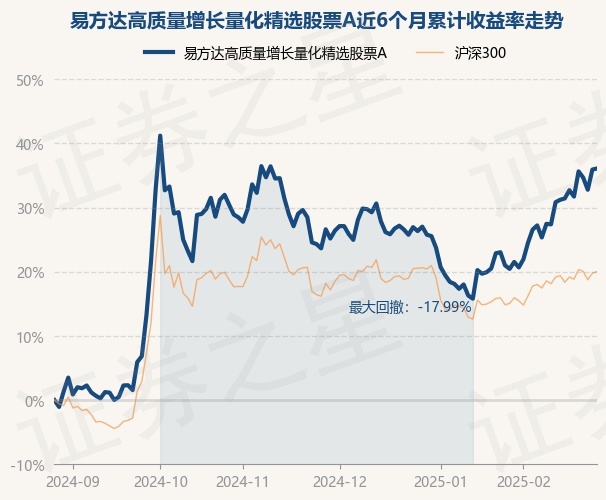 证券之星消息,2月27日,易方达高质量增长量化精选股票A最新单位净值为0.8457元,累计净值为0.8457元,较前一交易日上涨0.12%。历史数据显示该基金近1个月上涨12.78%,近3个月上涨7.49%,近6个月上涨36.1%,近1年上涨26.51%。该基金近6个月的累计收益率走势如下图: