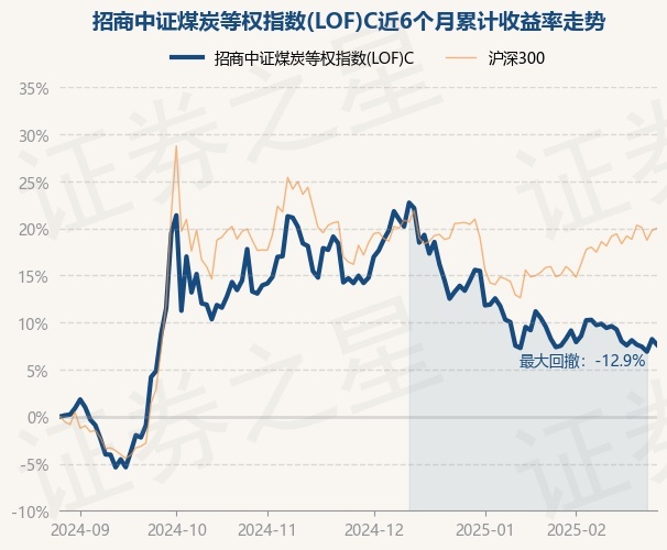 证券之星消息,2月27日,招商中证煤炭等权指数(LOF)C最新单位净值为1.775元,累计净值为1.775元,较前一交易日下跌0.55%。历史数据显示该基金近1个月下跌1.38%,近3个月下跌6.38%,近6个月上涨7.63%,近1年下跌9.75%。该基金近6个月的累计收益率走势如下图:
