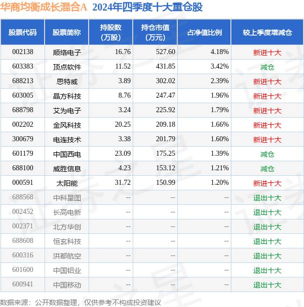华商均衡成长混合A为混合型-偏股基金,根据最新一期基金季报显示,该基金资产配置:股票占净值比77.32%,无债券类资产,现金占净值比24.59%。基金十大重仓股如下: