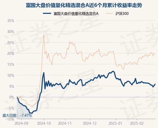 证券之星消息,2月27日,富国大盘价值量化精选混合A最新单位净值为1.615元,累计净值为1.615元,较前一交易日上涨0.5%。历史数据显示该基金近1个月下跌2.33%,近3个月下跌0.63%,近6个月上涨5.92%,近1年上涨12.41%。该基金近6个月的累计收益率走势如下图: