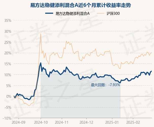 证券之星消息,2月27日,易方达稳健添利混合A最新单位净值为0.9804元,累计净值为0.9804元,较前一交易日上涨0.31%。历史数据显示该基金近1个月上涨3.3%,近3个月上涨2.25%,近6个月上涨11.55%,近1年上涨8.38%。该基金近6个月的累计收益率走势如下图: