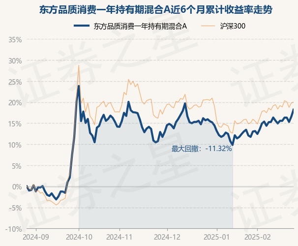 证券之星消息,2月27日,东方品质消费一年持有期混合A最新单位净值为0.4257元,累计净值为0.4257元,较前一交易日上涨1.43%。历史数据显示该基金近1个月上涨4.49%,近3个月上涨4.7%,近6个月上涨18.22%,近1年下跌1.71%。该基金近6个月的累计收益率走势如下图: