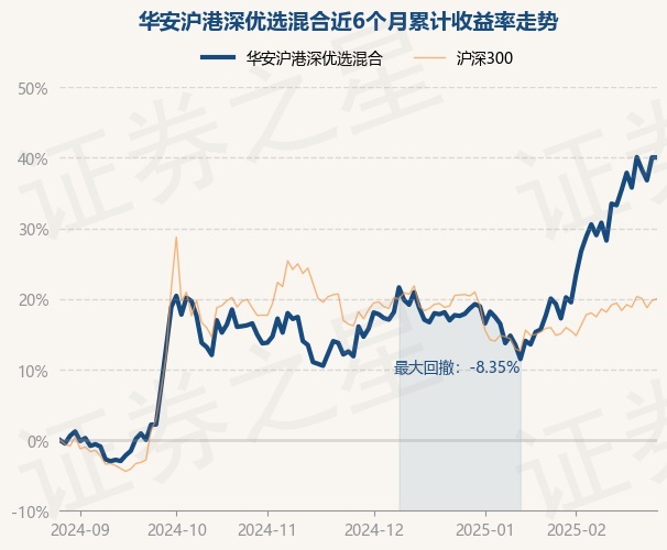 证券之星消息,2月27日,华安沪港深优选混合最新单位净值为1.0444元,累计净值为1.0444元,较前一交易日上涨0.0%。历史数据显示该基金近1个月上涨16.56%,近3个月上涨20.0%,近6个月上涨39.33%,近1年上涨45.12%。该基金近6个月的累计收益率走势如下图: