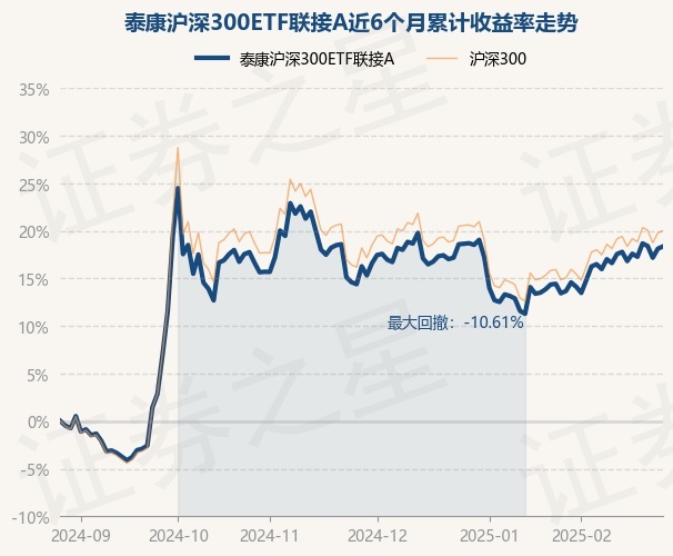 证券之星消息,2月27日,泰康沪深300ETF联接A最新单位净值为0.9702元,累计净值为0.9702元,较前一交易日上涨0.2%。历史数据显示该基金近1个月上涨3.71%,近3个月上涨1.79%,近6个月上涨18.36%,近1年上涨14.97%。该基金近6个月的累计收益率走势如下图:
