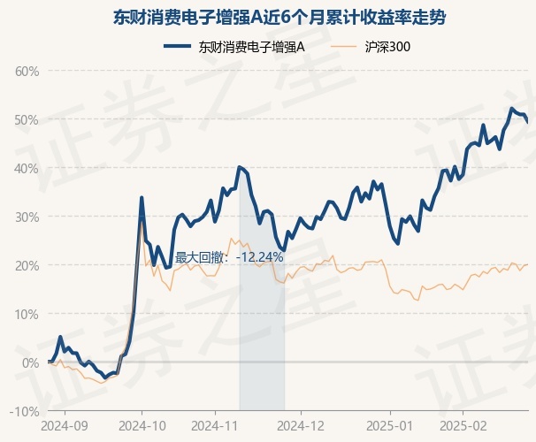 证券之星消息,2月27日,东财消费电子增强A最新单位净值为0.9349元,累计净值为0.9349元,较前一交易日下跌0.98%。历史数据显示该基金近1个月上涨8.6%,近3个月上涨17.85%,近6个月上涨49.39%,近1年上涨48.77%。该基金近6个月的累计收益率走势如下图: