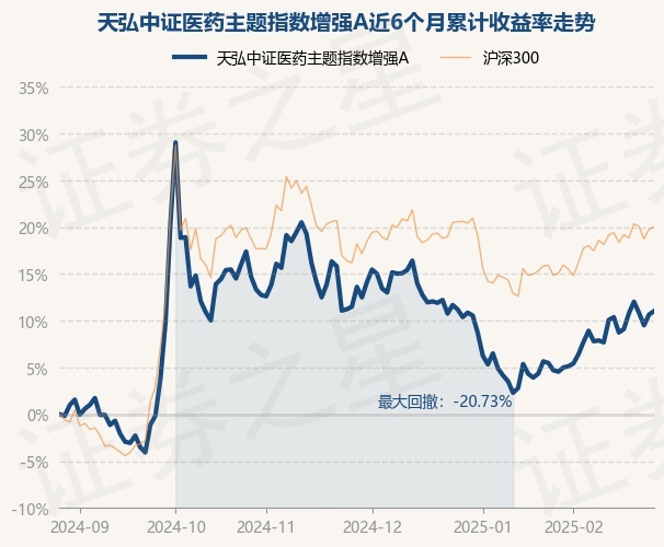 证券之星消息,2月27日,天弘中证医药主题指数增强A最新单位净值为0.6654元,累计净值为0.6654元,较前一交易日上涨0.33%。历史数据显示该基金近1个月上涨5.6%,近3个月下跌2.28%,近6个月上涨11.03%,近1年下跌5.98%。该基金近6个月的累计收益率走势如下图: