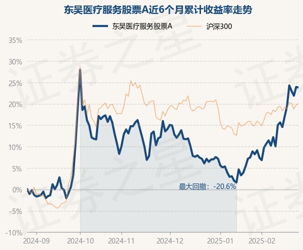 证券之星消息,2月27日,东吴医疗服务股票A最新单位净值为0.5689元,累计净值为0.5689元,较前一交易日下跌0.11%。历史数据显示该基金近1个月上涨15.28%,近3个月上涨6.76%,近6个月上涨23.81%,近1年上涨11.42%。该基金近6个月的累计收益率走势如下图: