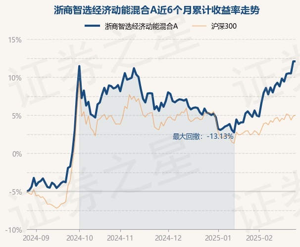 证券之星消息,2月27日,浙商智选经济动能混合A最新单位净值为0.6862元,累计净值为0.6862元,较前一交易日上涨0.0%。历史数据显示该基金近1个月上涨11.0%,近3个月上涨7.96%,近6个月上涨33.11%,近1年上涨17.3%。该基金近6个月的累计收益率走势如下图: