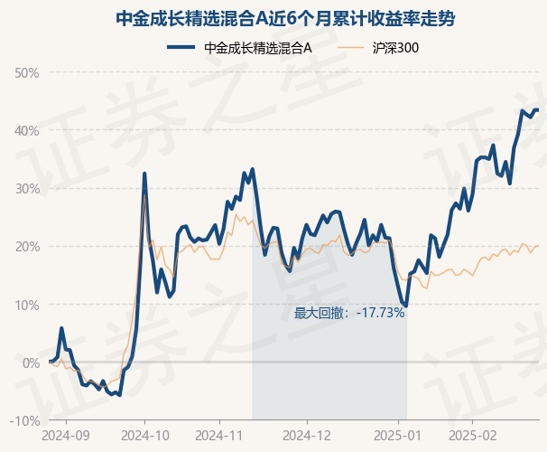 证券之星消息,2月27日,中金成长精选混合A最新单位净值为0.606元,累计净值为0.606元,较前一交易日上涨0.0%。历史数据显示该基金近1个月上涨12.68%,近3个月上涨18.71%,近6个月上涨42.02%,近1年上涨13.74%。该基金近6个月的累计收益率走势如下图: