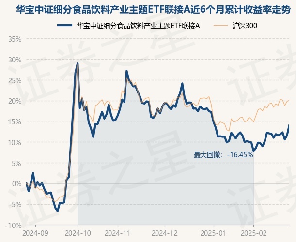 证券之星消息,2月27日,华宝中证细分食品饮料产业主题ETF联接A最新单位净值为0.6452元,累计净值为0.6452元,较前一交易日上涨2.12%。历史数据显示该基金近1个月上涨3.7%,近3个月下跌3.5%,近6个月上涨13.93%,近1年下跌7.02%。该基金近6个月的累计收益率走势如下图: