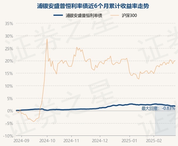 证券之星消息,2月27日,浦银安盛普恒利率债最新单位净值为1.0461元,累计净值为1.0531元,较前一交易日下跌0.12%。历史数据显示该基金近1个月下跌0.66%,近3个月上涨1.04%,近6个月上涨1.78%,近1年上涨3.54%。该基金近6个月的累计收益率走势如下图: