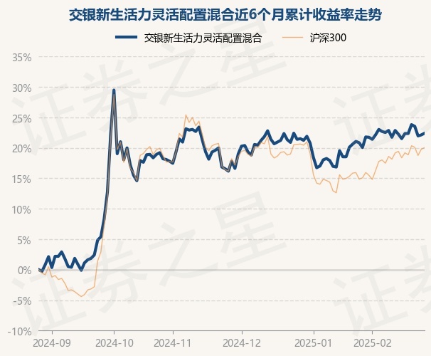 证券之星消息,2月27日,交银新生活力灵活配置混合最新单位净值为2.18元,累计净值为2.18元,较前一交易日上涨0.23%。历史数据显示该基金近1个月上涨0.55%,近3个月上涨3.91%,近6个月上涨22.4%,近1年上涨4.66%。该基金近6个月的累计收益率走势如下图: