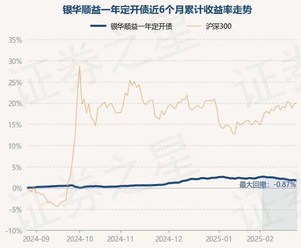 证券之星消息,2月27日,银华顺益一年定开债最新单位净值为1.026元,累计净值为1.106元,较前一交易日下跌0.11%。历史数据显示该基金近1个月下跌0.67%,近3个月上涨1.03%,近6个月上涨1.75%,近1年上涨3.7%。该基金近6个月的累计收益率走势如下图: