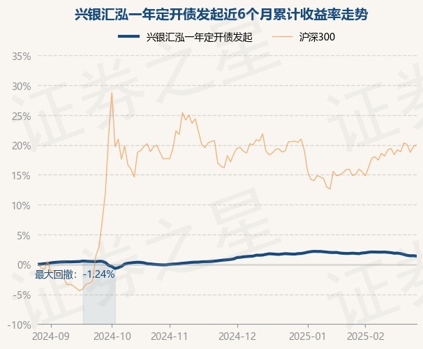 证券之星消息,2月27日,兴银汇泓一年定开债发起最新单位净值为1.0283元,累计净值为1.1008元,较前一交易日下跌0.07%。历史数据显示该基金近1个月下跌0.51%,近3个月上涨0.61%,近6个月上涨1.38%,近1年上涨2.67%。该基金近6个月的累计收益率走势如下图: