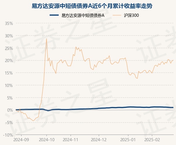 证券之星消息,2月27日,易方达安源中短债债券A最新单位净值为1.0249元,累计净值为1.1756元,较前一交易日下跌0.02%。历史数据显示该基金近1个月下跌0.16%,近3个月上涨0.45%,近6个月上涨0.92%,近1年上涨2.06%。该基金近6个月的累计收益率走势如下图: